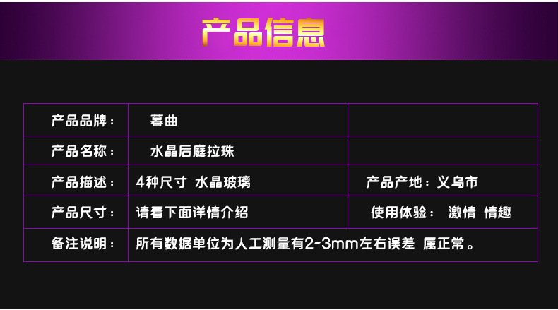 成人情趣用品后庭拉珠sm另类玩具大号玻璃肛塞夫妻调情外出扩肛器