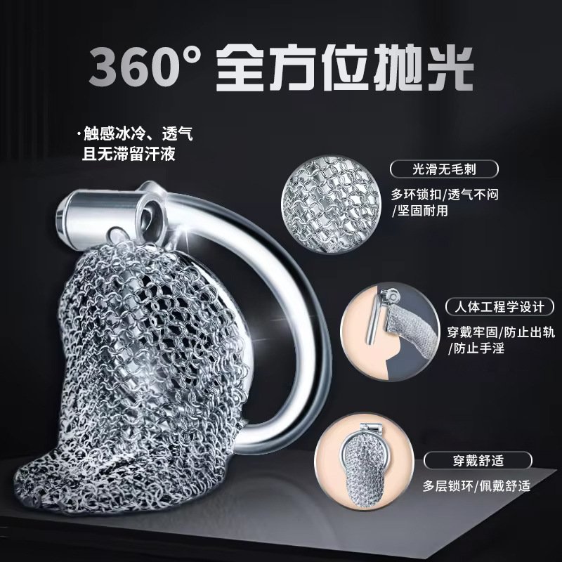 新款镂空式贞操锁锅盖短款链条贞操锁男用金属贞洁器成人情趣道具