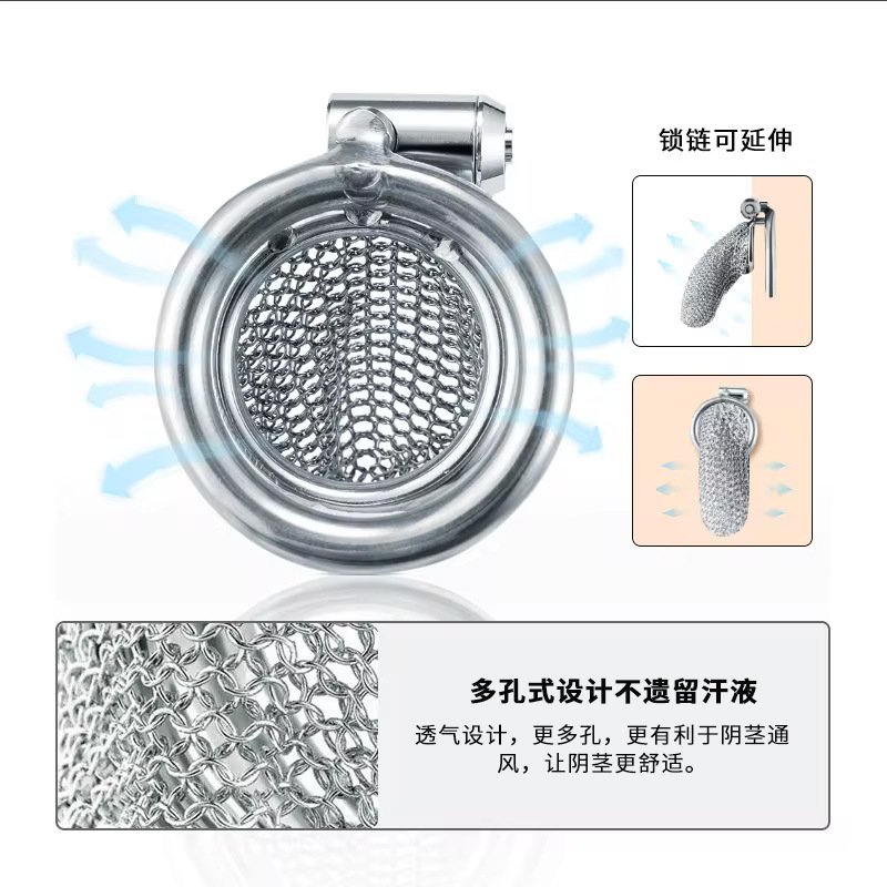 新款镂空式贞操锁锅盖短款链条贞操锁男用金属贞洁器成人情趣道具