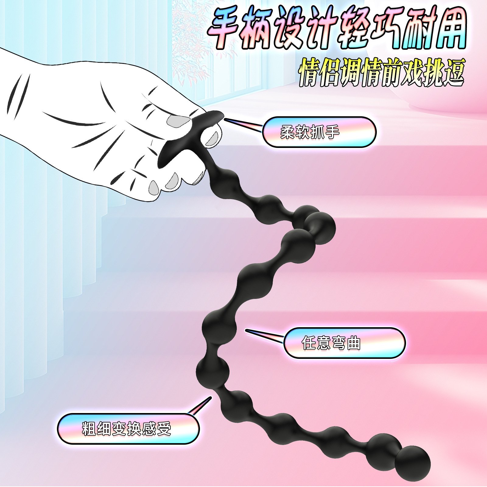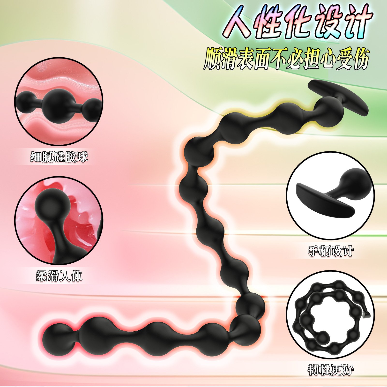 13珠超长拉珠硅胶肛塞柔软光滑男女肛门自慰按摩玩具情趣用品