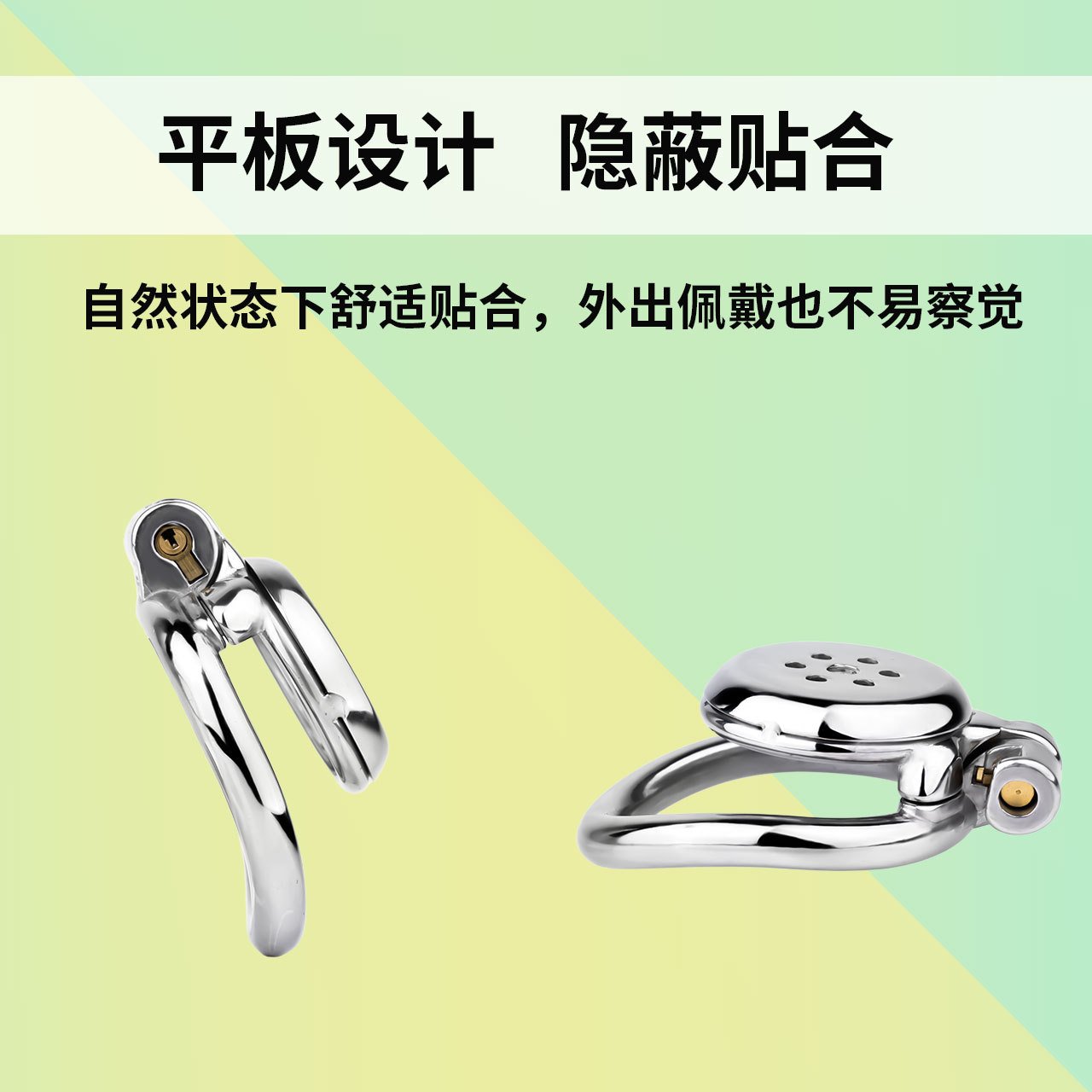 FRRK-3268 不锈钢金属CB平板大尿托贴片笼片负极简约贞操锁负数锁