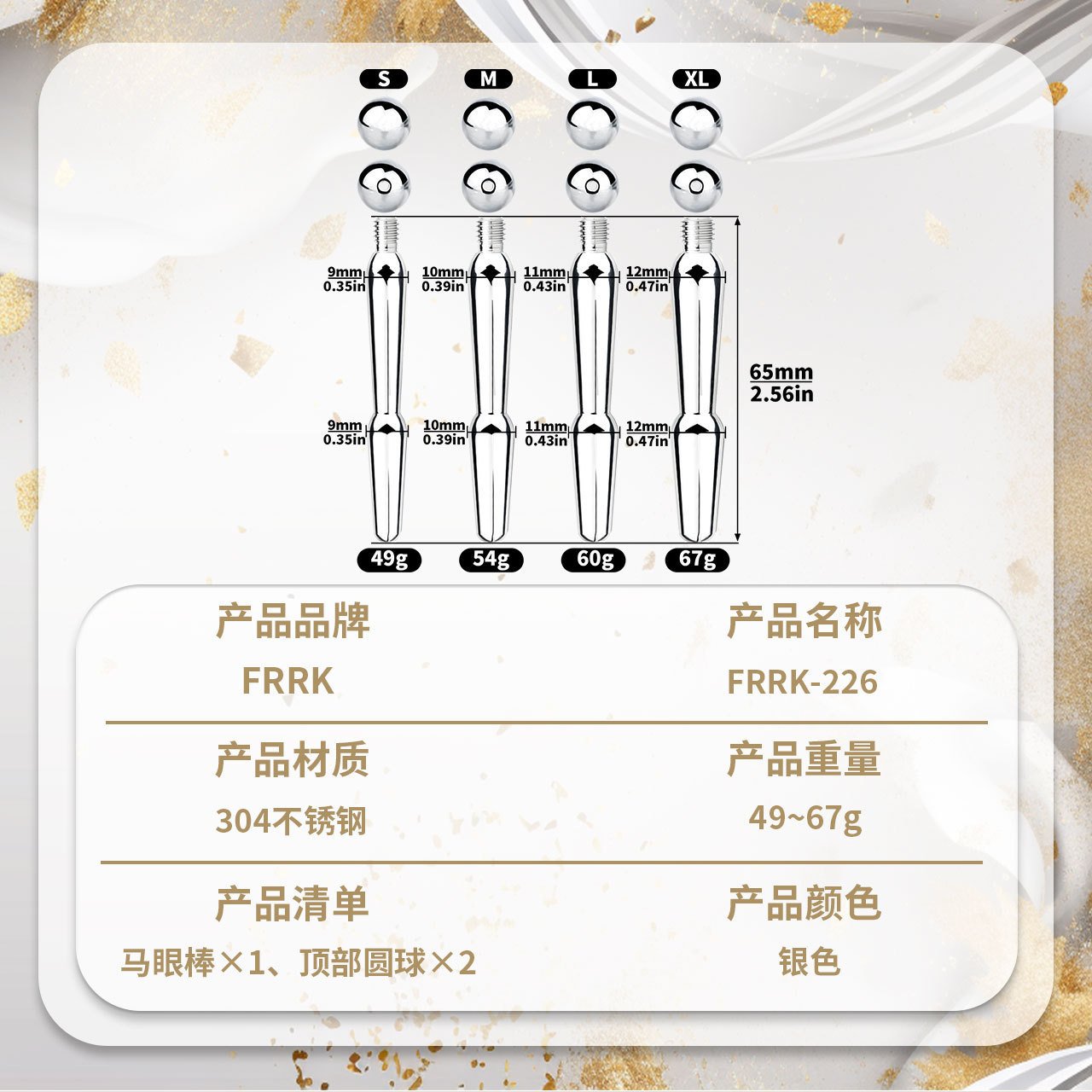 FRRK多尺寸不锈钢马眼棒尿道插堵扩张器光滑双头多功能男用肛塞
