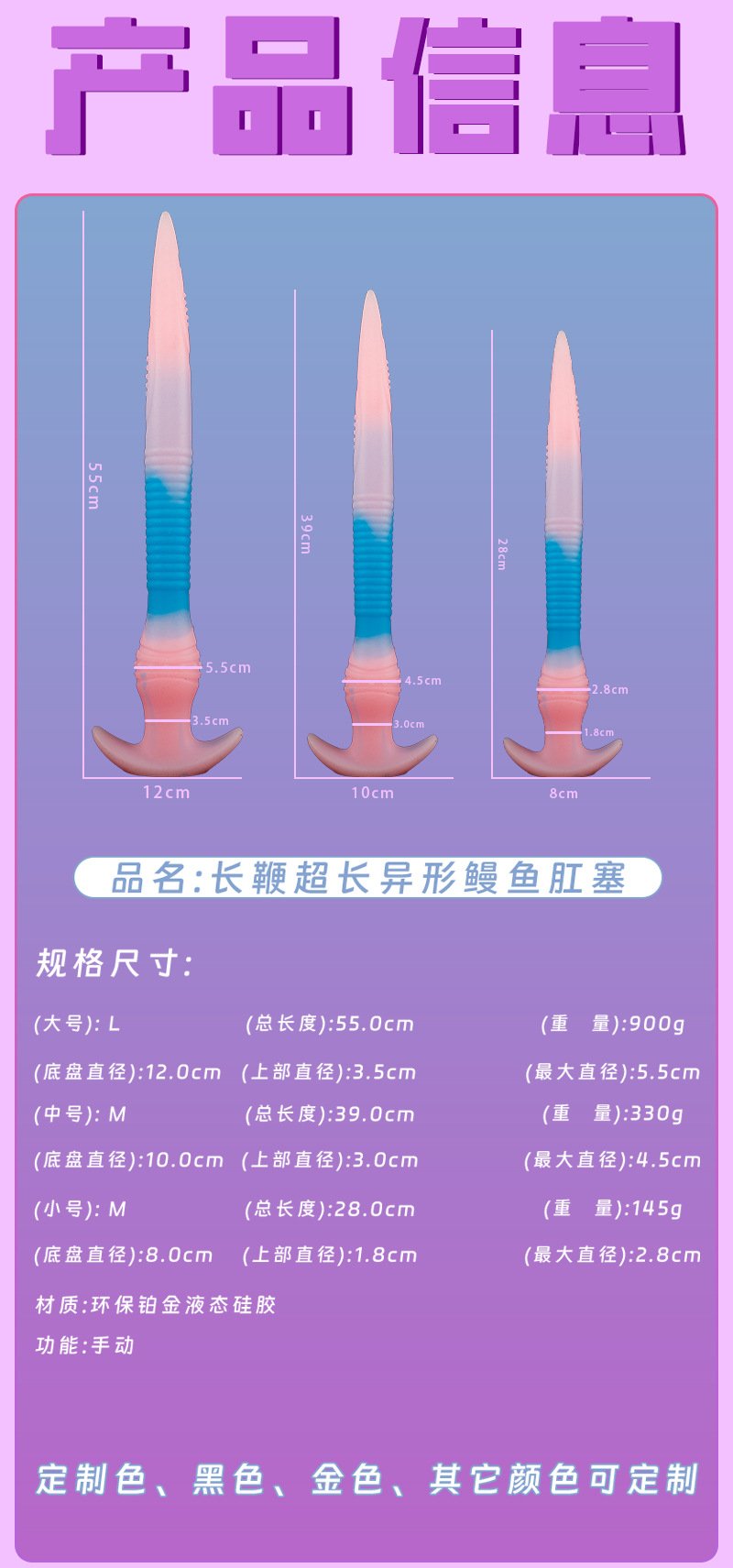夜光超长鳗鱼大小肛塞女用成人自慰扩肛器糖果色多款鳗鱼玩具