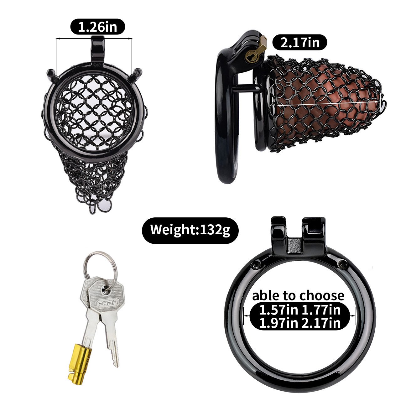 黑色纱网贞操锁金属锁子甲透气舒适佩戴男用贞洁鸟笼