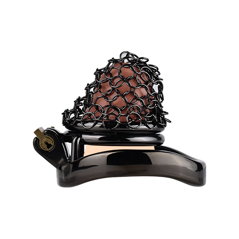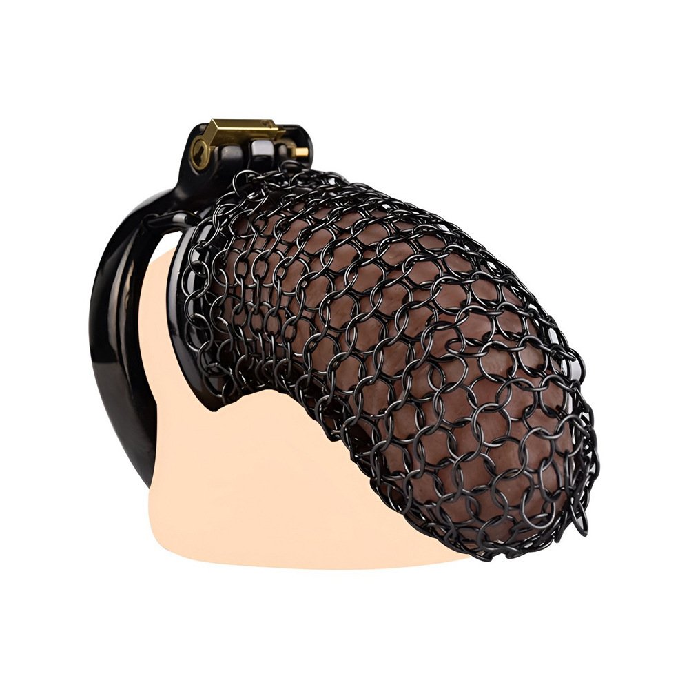 FRRK男用不锈钢网状黑色贞操锁光滑轻便防逃脱控欲阴茎锁成人情趣