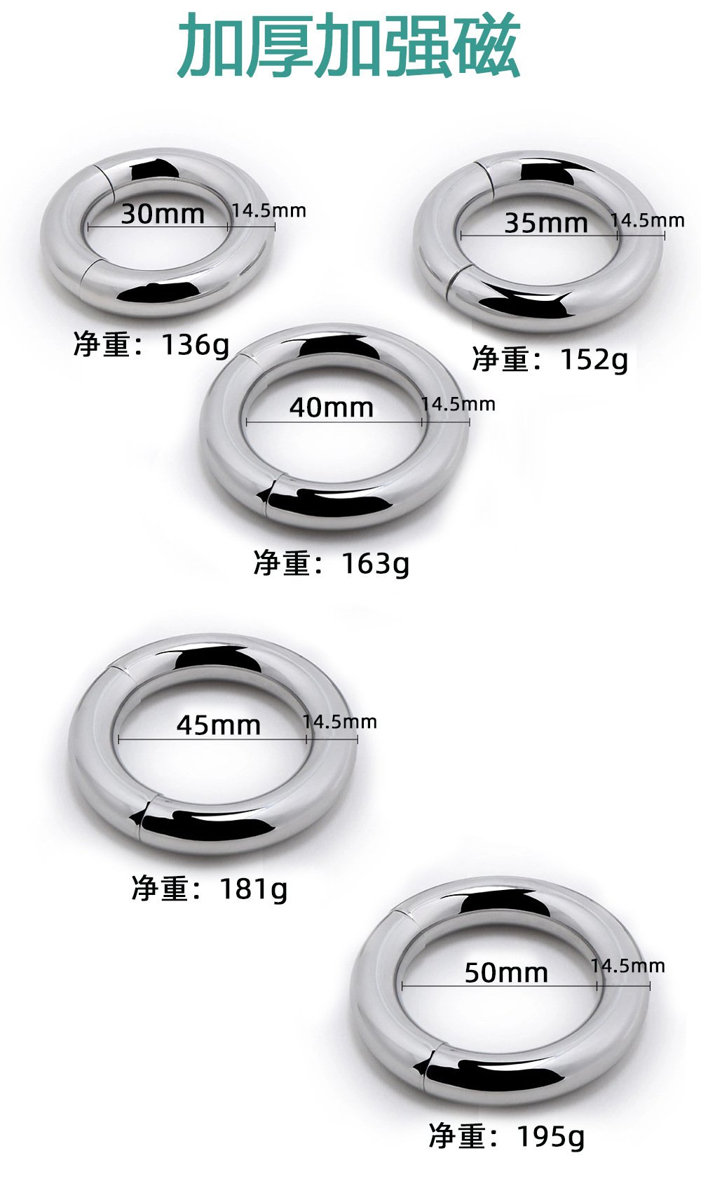 四分之一环金属阴茎环阴囊吊坠物理拉伸锻炼磁环磁铁阳具环4/1
